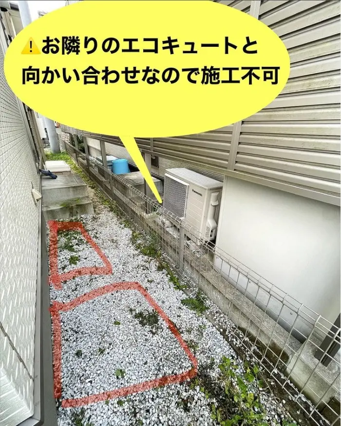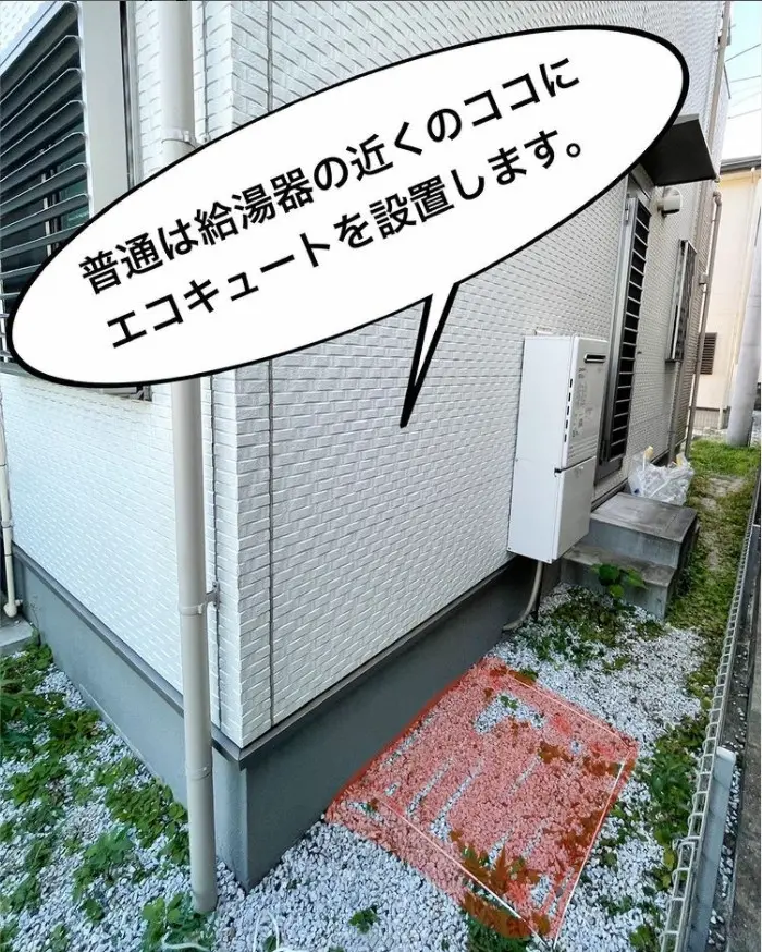 ・排水工事をせずにエコキュートから排出される水が垂れ流し。