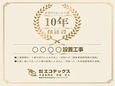 また、施工が完了しましたら「保証書」を発行いたします。万が一、工事に不備があった場合は、当社にご連絡ください。すぐに確認および対応させて頂きます。